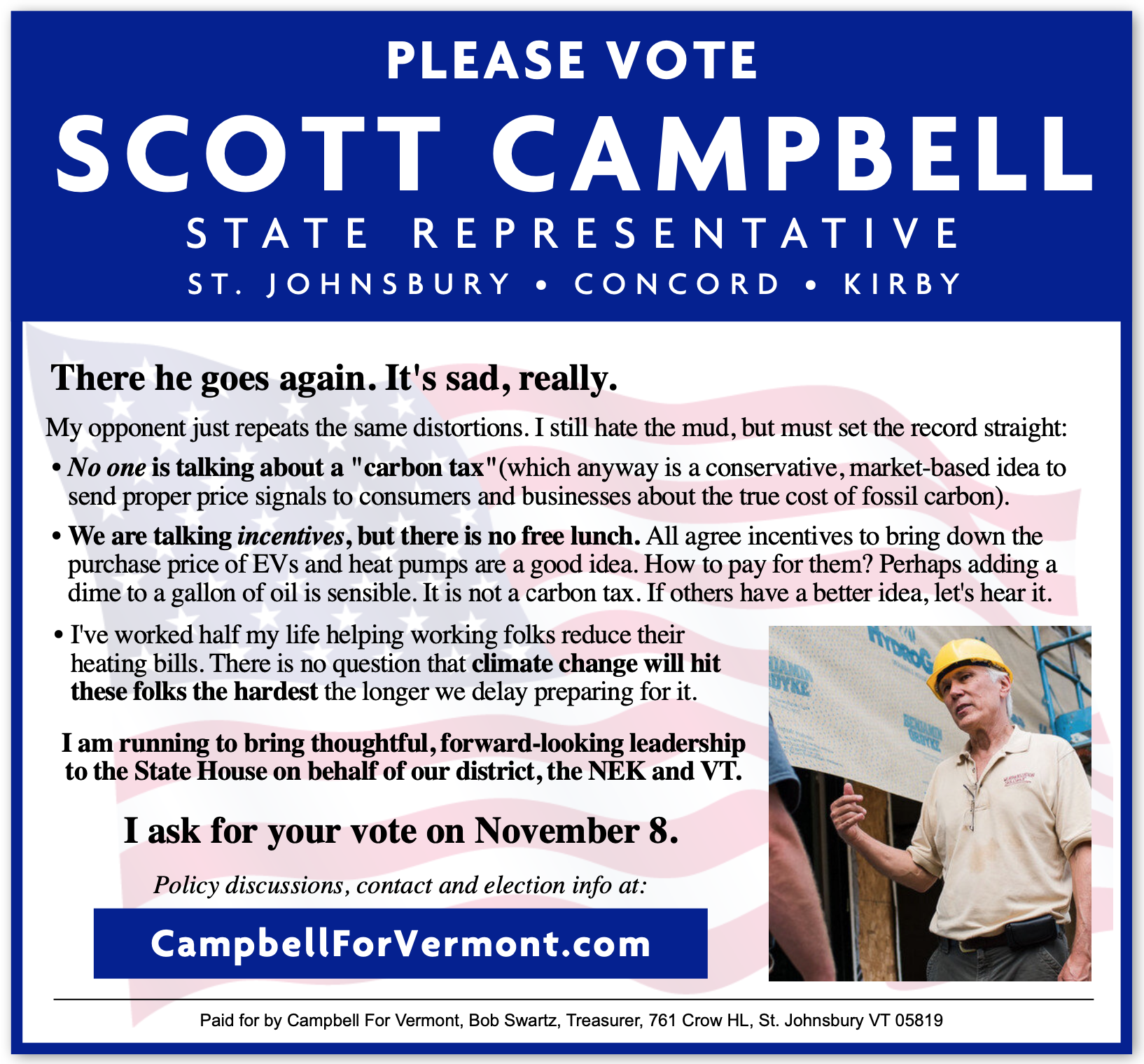 “Scott is a thoughtful, pragmatic leader for the NEK and Vermont. He understands the challenges we face in housing, childcare, healthcare, and adapting to climate change. He sees the economic opportunity presented by the transition away from fossil fuels and the need to adapt to climate change and the changes it will bring to the world, national, and local economy.” ~ Senator Patrick Leahy